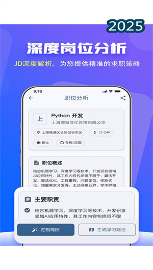 1. 职位深度分析工具通过多维度评估模型,全面解析目标岗位的工作内容、能力要求和职业发展空间。竞争态势分析显示岗位的应聘难度和竞争情况,薪资成长曲线预测未来收入潜力。企业背景调查功能提供用人单位的详细信息,而岗位适应性评估帮助用户判断匹配程度,使职业选择更加理性科学。