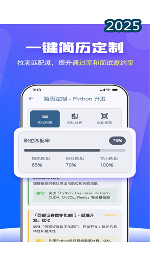 3. 简历定制优化系统采用智能解析技术分析目标职位的要求,通过简历匹配度算法精准优化简历内容。简历模板库提供各行业专业的简历样式,关键词优化引擎提升简历在筛选系统中的通过率。简历自动排版工具确保格式规范统一,而版本管理功能支持针对不同岗位生成定制化简历,显著提升面试邀约概率。