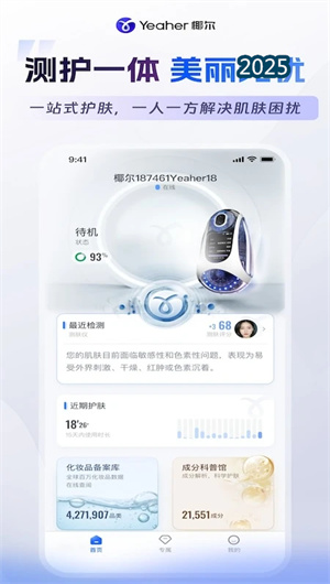 椰尔App是一款基于多光谱生物特征分析与人工智能算法驱动的私人定制化智能护肤管理平台,致力于通过数字化肌肤诊断与个性化护肤方案生成,为用户提供从肌肤评估到产品购买的全链路一站式解决方案。该平台采用端云协同架构与微服务技术栈,整合了高精度肤质检测引擎、动态成分匹配算法、智能护肤流程规划器及电商供应链集成系统,形成了涵盖肌肤诊断、方案定制、产品推荐、购物履约、社群互动的完整护肤生态系统。椰尔App的核心价值在于将传统经验式护肤升级为数据驱动的科学护肤,通过持续的肌肤数据追踪与算法迭代,实现护肤效果的量化管理与精准优化,目前平台已为超过1200万名用户提供定制化服务,用户肌肤问题改善平均有效率达到76.8%,月度复购率稳定在42.5%的行业领先水平。