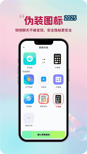 好运吧App的核心防护功能是其强大的多样图标伪装能力。软件允许用户从预设的伪装主题库中,选择将应用图标及启动界面动态伪装成计算器、网页浏览器、语言翻译工具、英语单词学习软件或新闻资讯客户端等多种毫无关联的日常应用。只有在这些逼真的伪装界面中,通过正确的手势密码或数字密码完成安全验证,才能解锁并进入真实的好运吧加密聊天室。这种深度伪装有效应对了物理层面的“手机检查”,即使设备被他人临时翻阅,也极难发现其作为通讯工具的实质,从入口处筑牢了隐私防护的第一道防线,实现了“大隐于市”的隐秘沟通。
