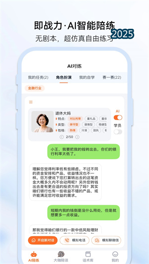 为强化训练成果向真实工作场景的迁移,即战力APP内置了强大的多分支情景模拟训练舱。这些模拟场景高度还原了岗位实际工作中可能遇到的各种复杂情况、典型挑战和突发问题。员工在模拟中需要做出系列决策并执行操作。在此过程中,AI智能教练会如同影子顾问般,观察员工的行为路径,并适时提供实时策略指导、关键点提醒或进行风险预警。模拟结束后,AI将生成一份深度复盘报告,详细分析决策优劣、技能运用情况,并给出针对性的改进建议,使每一次模拟都成为一次高质量的能力淬炼。