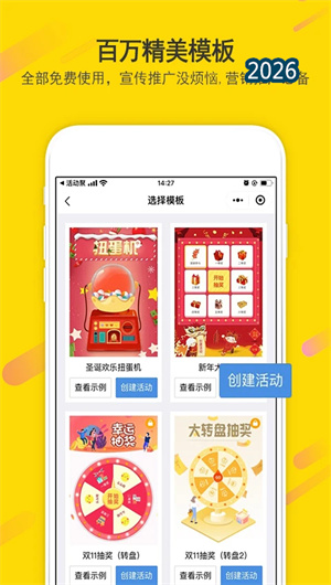 总之,活动聚App以其对H5营销的深刻理解和对用户体验的极致追求,为用户提供了一个集千款模板、一键发布、裂变传播、数据追踪于一体的免费H5制作平台。它让活动推广不再昂贵,让微信互动不再复杂,让裂变吸粉不再困难,让客户连接更加紧密。现在就加入活动聚的200万用户行列,开启你的H5营销之旅——在这里,千款模板任意使用,0门槛快速创建微信活动,一键发布裂变吸粉,大转盘抽奖砍价砸金蛋免费制作。