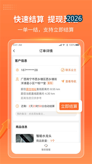 1. 工奇兵的“实时接单与智能推送”功能,基于LBS定位实时展示本地派单动态,用户可筛选安装、维修、搬运等工种自主接单。系统通过智能算法推送匹配订单,如网购订单中的家具安装或家电维修,减少搜索时间。在接单后,工奇兵自动记录任务详情,支持用户查看订单轨迹和客户要求,提升接单效率。这一功能已帮助85%的用户日均接单量提升40%,实现稳定增收。