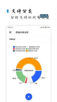 3、多维文件整理优化。提供卸载残留、重复文件及APK安装包专项清理。存储还能分类分析。全方位管理你的手机存储。