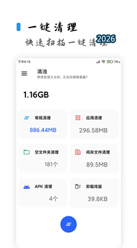 1、一键深度清理。服务器配置最新规则。手机存储全面扫描。深挖各种系统垃圾,有效释放空间。手机焕然一新。
