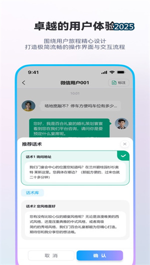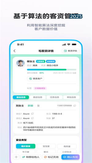宴满满提供完整的客户画像分析功能,通过行为追踪和偏好分析构建精准的客户数据库。系统自动记录客户的浏览轨迹、咨询记录和决策周期,生成个性化的跟进策略。特有的AI会话中心可智能分析客户需求,提供实时的话术建议,将转化率提升40%。