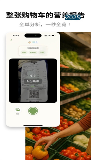 啄食是一款革命性的智能营养分析应用,致力于解决现代人面对复杂食品标签时的选择困境。该应用采用先进的人工智能视觉识别技术,通过智能拍照扫描系统快速解析食品包装上的配料成分表、营养标签数据及购物小票信息。系统内置专业营养数据库,涵盖超过10万种食品成分的健康评级标准,能够即时生成易读性解读报告和个性化饮食建议。无需专业营养学知识,用户即可在超市购物、餐厅用餐等场景中做出明智的健康饮食决策,为家庭餐桌把好营养关。