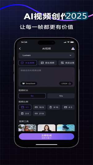 1. 智能视频工坊:基于生成式视频模型与动态特效引擎,实现电影级短片的一键生成与高清修复功能。系统支持文本转视频、图像序列动画化与老视频智能增强,集成超分辨率重建与色彩分级工具,使视频制作效率提升约300%。用户只需输入创意描述或上传素材,即可快速生成包含转场特效、动态图形与智能配乐的完整视频作品,极大降低专业视频制作的技术门槛。