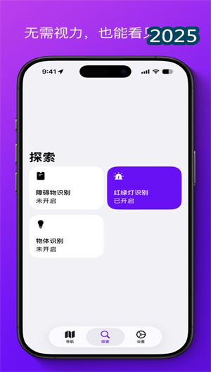 在探索模式下,奥里导航调用设备的后置摄像头,依托于机器学习视觉识别引擎,对周围环境进行实时检测与分析。该功能能够精准识别静态障碍物(如电线杆、垃圾桶)、动态危险源(如车辆)、交通信号灯状态以及盲道铺设情况。识别结果通过简洁的语音提示即时反馈给用户,例如“前方两米有障碍物”、“盲道向右偏移”,帮助用户及时作出安全决策,构建起一道移动的电子安全防线。