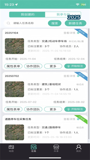 平台构建了完善的动态任务管理机制,支持用户根据项目需求自定义任务范围、执行时间与任务类型。通过智能分类列表设计,系统将任务自动归类至"我创建的"与"我参与的"两大视图,实现任务的快速检索与状态跟踪。任务数据支持一键导出功能,提供包括Shapefile、KML、CSV在内的多种标准格式,完美适配自然资源调查的空间分析、城市规划的方案设计以及物流路径规划的优化计算等专业场景需求。