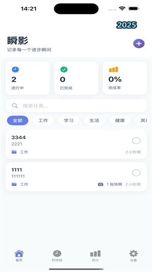2. 深度沉浸式追踪与记录功能:瞬影提供超越简单勾选的沉浸式追踪体验。其时间流记录模块允许用户为每个任务启动专属的专注计时会话,期间系统会以优雅的视觉粒子特效直观呈现时间的流逝。完成的任务不会简单消失,而是通过完成态动画引擎转化为成就星轨的一部分,汇入用户的个人成就银河。应用还支持多维附件集成,用户可为任务关联笔记、灵感草图甚至短音频,所有内容通过时空标签系统索引,形成可回溯的立体化项目记忆,极大丰富了任务管理的维度与深度。