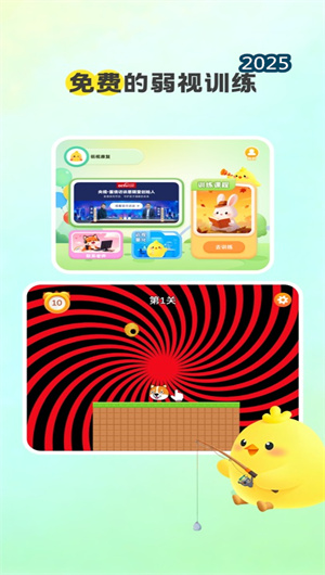 《弱视康复》是一款遵循现代视觉科学原理、以游戏化形式呈现的免费专业弱视辅助训练应用程序,旨在通过精心设计的交互式视觉刺激与知觉学习任务,为用户的弱视康复过程提供科学、有趣且可持续的辅助训练方案。本应用深度整合了临床验证的视觉训练范式与行为动机理论,将传统治疗中可能枯燥的遮盖疗法、精细目力训练、视觉刺激疗法等核心方法,转化为一系列结构化的游戏化训练课程。平台通过算法动态调节训练任务的视觉参数(如对比度、空间频率、移动速度),并利用实时表现评估系统提供个性化难度适配。我们深刻理解弱视康复的长期性与挑战性,因此致力于创造一个零经济负担、充满积极反馈的数字化训练环境,帮助用户在坚持训练的同时,提升双眼视功能与视觉感知能力,但务必强调:本软件为辅助性训练工具,所有训练均应在专业眼科医生或视光师的指导与监测下进行。