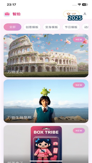 尽管技术内核复杂,但《智拍》坚持 “用户零门槛” 的交互哲学。整个创作流程被极致简化为清晰的三步:素材上传 -> 模板挑选 -> 一键生成。应用界面将所有强大的AI功能包装成一个个直观、吸引人的滤镜模板卡片,用户无需理解背后的技术参数,只需像挑选商品一样,被精美的模板预览图所吸引,点击即可应用。这种 “模板驱动” 的模式,极大地降低了创意启动的心理成本和技术障碍,让天马行空的想象能够瞬间落地为可见的作品。