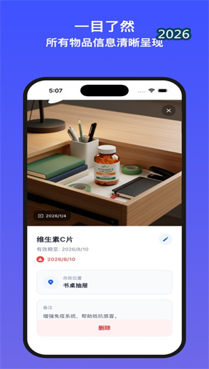 AI找物的核心功能是革命性的语音交互建档。用户无需任何手动输入,只需通过自然语言描述,如“记录一瓶维生素C放在厨房左边橱柜第二层,保质期到2025年8月”,应用的高精度语音识别模块会即时将语音转为文字,并由其智能语义解析引擎自动提取关键实体与属性:“物品名称(维生素C)”、“存放位置(厨房左柜第二层)”、“有效期限(2025年8月)”。这一过程深度融合了命名实体识别(NER) 与关系抽取技术,自动构建结构化的物品属性条目,录入效率较传统方式提升超过200%,真正实现了“动口不动手”的零摩擦数据录入体验。