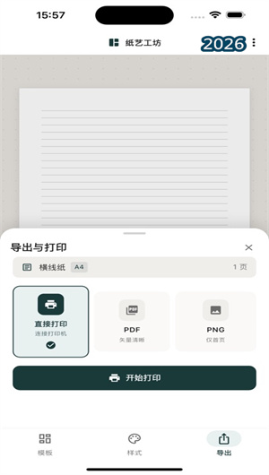 生成满意的模板后,纸艺工坊提供专业级的文档输出解决方案。用户可将最终设计以PDF矢量格式导出,该格式能保证在任何分辨率下打印都清晰锐利,完美保留所有线条与网格的精度。同时,为满足屏幕使用或分享需求,也支持导出为高分辨率PNG位图。最为便捷的是,应用内置 “一键打印”驱动接口,可直接调用系统打印服务,与本地或网络打印机连接,实现从设计到实体纸张的端到端无缝工作流,极大地简化了传统寻找、下载、调整模板再打印的繁琐过程。