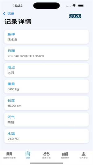 为满足垂钓爱好者的记录需求,应用开发了功能完备的个人垂钓日志系统。用户可为每一次出钓创建独立的垂钓记录档案,在档案中不仅可以记录渔获的鱼种、数量、尺寸(系统支持拍照并与江鱼物种数据库自动关联识别建议),还能详细录入垂钓环境参数,如钓点位置(集成地图标记)、天气状况、水温、水质透明度、水流速度、所用饵料及钓法等。更重要的是,系统鼓励用户记录鱼类行为观察,如咬口频率、活跃水层、集群情况等。所有这些结构化的数据录入,为后续的数据分析与规律总结提供了坚实基础,将传统的“凭感觉”钓鱼推向更科学的“数据驱动”模式。