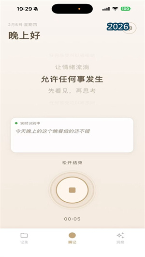 瞬记的零延迟体验让用户说话时无需等待转写完成,保持情绪的自然流动。语音记录时界面极简,只有波形动画,没有任何干扰元素,让用户专注于表达本身。