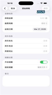 1、一键录入房租、水电、燃气、宽带,到期前三天弹窗提醒,再忙也不会逾期。