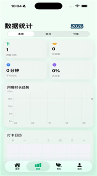 3、自动追踪你饮食习惯的变化趋势。坚持了多少天、每餐吃了多久,这些数据都一目了然,让你清楚看到自己的每一点进步。