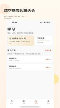 3、提供填空、背诵、默写三种练习模式,可以按难度循序渐进完成每日任务,帮助孩子真正记住而不是死记硬背。