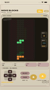 1、界面复刻街机风格,像素风数字和简洁背景,没有花里胡哨的干扰,专注落块体验。