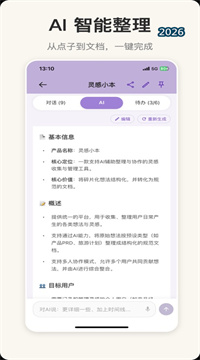 《灵感小本》是你随时能用的AI创意助手。帮你快速记录各种想法,AI自动生成结构文档和待办事项,点子马上变行动。