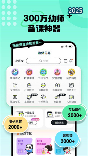 1. 体系化内容:完整覆盖学前教育各领域,包含200+个教学主题。运用"领域整合"、"主题延伸"、"活动拓展"等方式,满足教师多样化的教学需求。