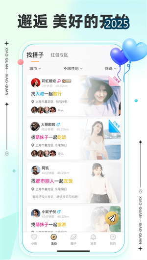 3. 场景化社交工具:小圈提供咖啡邀约、晚餐约会等标准化社交场景模板,用户可一键发起邀约。通过时间管理和地点推荐系统,简化约会安排流程,而安全提醒功能则为线下见面提供保障。
