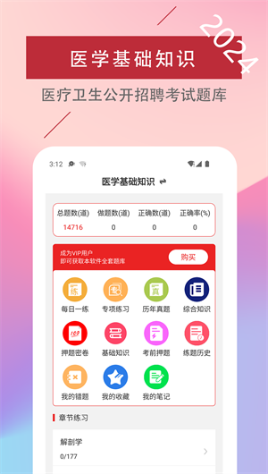 医学基础知识易题库 v3.7 致力于为医学爱好者、医学生及相关从业人士提供一个覆盖全面、深入专业、紧扣考纲的学习与备考平台。应用依托医疗健康招聘考核的官方教材大纲,囊括从基础理论到临床实践的多维度知识模块,全方位提升用户的医学理论水平与实践操作能力,助力高效应对各类医学考核与职业挑战。