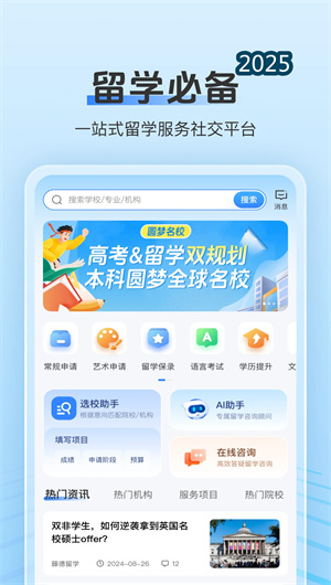 留学君App是一款基于人工智能技术的一站式留学服务社交平台,深度融合留学君AI引擎与留学君大数据中心,通过留学君云端同步技术实现多终端数据无缝衔接。平台采用留学君智能匹配算法为核心,集成留学君院校库和留学君专业库,覆盖全球顶尖教育资源的详细信息。其核心架构依托留学君知识图谱和留学君推荐系统,为留学生提供从选校定位到申请成功的全流程数字化服务。系统包含留学君社区论坛和留学君资讯中心,构建起连接准留学生、在校学长和专业机构的互动生态体系。