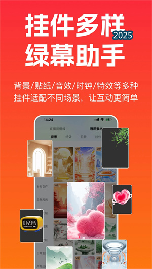 主播宝的核心功能在于其广播级的 1080P高清抠像技术。通过先进的AI算法,即便在非理想光线条件下,也能对绿幕直播画面进行精准、发丝级的人物边缘识别与背景分离,有效消除毛边与闪烁。在此基础上,用户可利用多图层搭建功能,自由叠加背景图片、动态视频、品牌Logo、产品贴纸等海量素材,构建出富有层次感和专业感的虚拟场景。此功能彻底打破了物理空间限制,让直播小白也能在手机端轻松搭建出媲美专业团队的虚拟直播间。