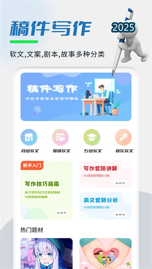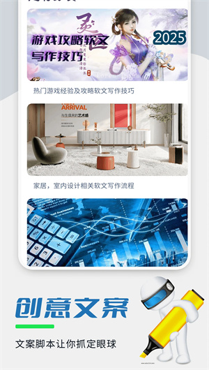2. 系统化的垂直领域写作教程库:平台内置了一个结构严谨、分类细致的写作教程体系,内容覆盖商务软文的谋篇布局、小说剧本的情节架构、情感心理文章的共鸣技巧等。这些教程由行业专家精心编撰,并非空泛的理论,而是提供了大量可模仿的范文模板与实用的写作技巧。用户可以通过系统学习,快速掌握不同领域的文案创作方法论,从而提升自身的专业写作素养与实战能力。
