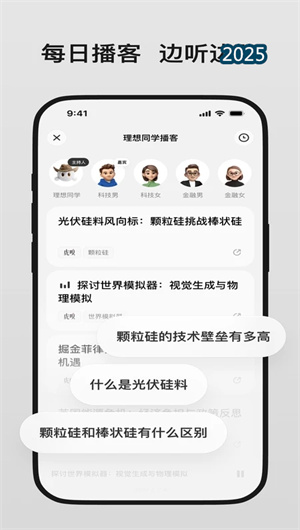 1. 理想同学的播客转译功能与虎嗅平台、量子位等权威媒体合作,通过内容重构技术将专业文章转化为对话形式的音频内容。用户可自定义嘉宾音色和语速调节,系统基于情感语音和自然韵律生成沉浸式播客。该功能还支持每日推送和兴趣订阅,结合智能摘要和关键点提取,使知识获取效率提升40%,满足用户碎片化学习需求。