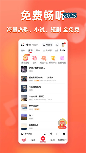3. 快音App的车载音乐解决方案专门针对驾驶场景优化,提供安全便捷的音频体验。该功能集成车载DJ模式和专属电台流,通过智能声场适配技术自动调整音频输出参数。在车载专享界面中,系统预设了防疲劳音乐清单和智能播报方案,有效提升驾驶安全性。依托平台庞大的音乐资源库,用户无需购买U盘即可享受持续更新的车载音乐内容,同时支持离线下载功能,确保在网络不稳定区域仍能顺畅播放。