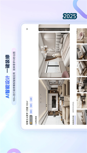 1. 智能化户型构建与识别功能:该功能模块彻底革新了传统绘制户型的繁琐流程。用户可通过手机的拍照量房功能,对实际空间进行拍摄,App内嵌的AI识别算法将自动识别墙体、门窗与梁柱,在秒级内自动生成3D户型图,极大地提升了初始建模效率。同时,平台提供了覆盖全国主流楼盘的海量户型库,用户可直接搜索调用,无需从零开始绘制。生成的户型图将直接进入我的设计项目列表,并支持在编辑器界面中进行二次修改,这一功能让专业设计门槛降低了70%,使设计初学者也能快速上手。