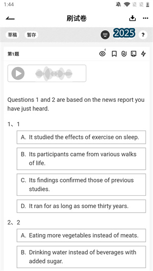 平台汇聚近十年各类考试的真题资源,提供全真模拟的考试环境,严格按照正式考试的时间限制与题目顺序进行设置。创新的试卷模式完整还原考场体验,答题卡设计符合标准化考试要求。专业的模拟报告从答题速度、准确率、稳定性等维度进行全面分析,帮助用户提前适应考试节奏,实战能力提升55%。