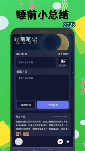 2. “声音日记”情绪追踪与声景自适应匹配:App创新性地推出了“声音日记”功能。用户可以在记录简短心情文字后,系统会结合情绪识别技术,自动从声音库中匹配并推荐能够疏导或强化该情绪的环境音或冥想音效。长期使用,App会生成用户的情绪声谱,直观展示情绪与声音偏好之间的关联,帮助用户更科学地利用声音进行自我调节和情绪管理。