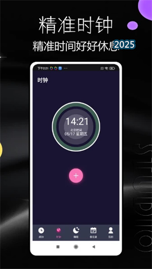 1. 智能化环境集成与动态时钟界面:休息日App的首页是一个高度集成的信息中枢。它不仅清晰显示时间,更会即时查看并呈现当日天气,包括温度、湿度及天气状况(如晴、雨、雪)。这些环境数据会智能联动其独特的时钟界面,例如,在雨天界面色调与背景会变得柔和舒缓。用户可以根据个人喜好,在多种主题皮肤(如极简、拟物、动态)中进行选择,使时钟界面不仅是一个工具,更是一个契合心情的个性化装饰,为您的休息日增添个性化色彩。