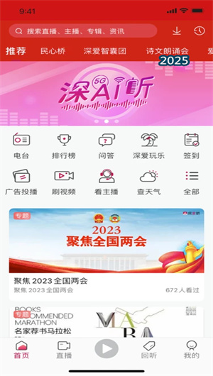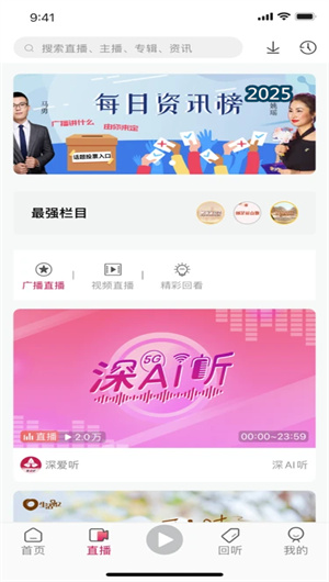 深爱听App是深圳广播电影电视集团官方打造的广播融媒体平台,作为集团在"电台+移动互联网"战略布局的核心产品,全面聚合深圳广播四大核心频率的优质内容。平台深度融合广播媒体的专业性与互联网的交互性,通过数字化转译、场景化分发与智能交互重构传统广播的传播范式。在内容层面完整收录"先锋898"的权威新闻解读、"飞扬971"的多元音乐推荐、"快乐1062"的实时路况播报以及"生活942"的生活服务指南,形成覆盖资讯、娱乐、出行、生活四大维度的完整内容矩阵。在技术层面依托云端同步、AI推荐、实时编码等先进技术,全面适配移动终端与车联网场景的使用需求,为超过500万深圳用户构建具有地域特色的数字音频生活空间。