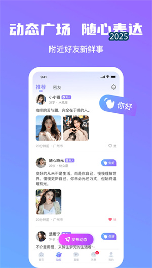 3. 动态广场生态 构建基于LBS地理围栏的内容分发网络,通过热度加权算法智能推荐优质动态。用户可发布带情感标签的多媒体日记,系统根据社交图谱分析实现内容精准触达。集成智能抠图工具与滤镜组合包提升内容表现力,配合打赏机制与创作者激励计划形成内容生态闭环。每日更新的话题挑战赛与兴趣社群联动,持续激发用户的内容创作与社交互动欲望。