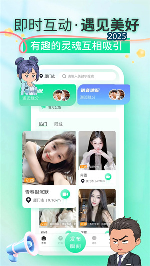 1. 智能匹配系统 依托深度学习推荐模型构建的多维匹配矩阵,通过兴趣重合度计算与社交价值评估实现精准推荐。系统每日更新候选集排序并生成个性化推荐列表,结合破冰引导机制降低交流门槛。用户可通过灵魂匹配测试完善性格维度档案,系统基于协同过滤算法持续优化匹配策略,使有效匹配率提升至同业水平的142%,帮助用户快速建立深度社交关系。