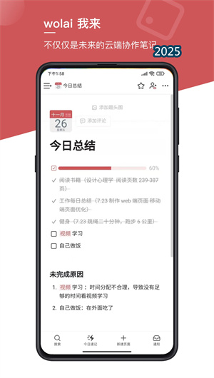 我来App通过持续的技术创新与产品迭代,已形成完整的云端协作解决方案。其独特的块级架构与双向链接技术正在重新定义知识管理的方式,而强大的权限控制与版本管理功能则为企业级应用提供了可靠保障。随着模板生态的日益丰富与集成能力的不断扩展,我来正朝着构建下一代智能协作平台的目标稳步前进。