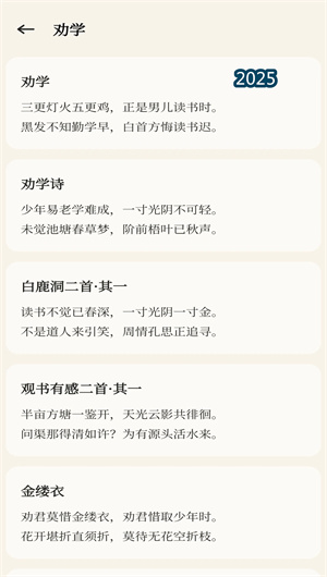 1. 善语App的诗词鉴赏中心采用多维分类导航,通过时代脉络梳理完整呈现诗词发展历程,流派特征分析深度解析不同诗派的艺术特色。专业注释系统提供权威的字词释义与背景解读,语音吟诵功能配备专业播音员的声情并茂朗读,意境可视化通过精美配图展现诗词画面,这套完整的鉴赏体系使用户理解深度提升约65%。
