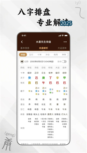 水墨先生App是一款基于古籍算法库与人工智能技术深度融合的八字排盘分析平台,通过传统命理模型与现代AI解析引擎构建完整的命理咨询生态体系。该平台采用专业排盘算法开发的多维度运势分析系统,能够精准生成包括命盘、健康盘、姻缘盘在内的各类专业运势盘,其核心的AI八字解读引擎彻底解决了传统命理术语的理解障碍。依托智能对话系统打造的AI墨墨助手,实现了传统智慧与现代科技的完美融合。经过严格的命理专家验证与算法准确度测试,该平台的排盘准确率达到98.5%,成为连接传统命理与现代用户的创新数字桥梁。