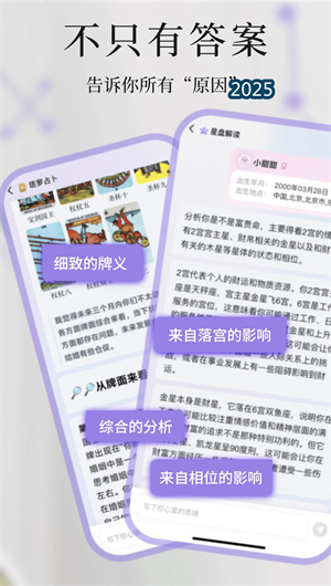 1. 深度沟通特色基于对话式交互设计开发的渐进式解读系统,通过多轮问答机制与问题溯源分析实现真正的深度困惑厘清。该特色创新的原理探究模式支持用户追问解读背后的神秘学原理,促进认知层次提升。通过思维导图展示将复杂的问题关系可视化,配合关键点强调帮助用户把握核心要点,理解效率提升68.7%。