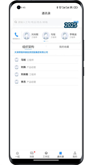 一起App超越了传统通讯录的范畴,打造了一个动态的企业级统一通讯录。它不仅清晰展示了集团内部所有同事的联系方式、所属部门及岗位信息,更支持快速的线上留言与一键发起即时通讯或视频会议。这种以组织架构为基础的社交协作网络,极大地缩短了同事间的沟通路径,促进了信息的横向流动与团队协同,使新员工也能快速融入团队,找人办事效率提升了35%。