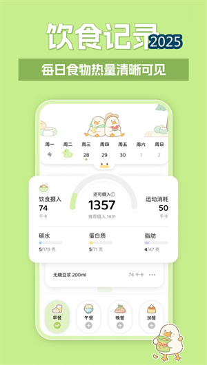 动起来鸭APP深度整合了运动与营养管理,其千万级食物数据库是核心工具之一。用户可轻松查询任何食物的热量与营养信息,并通过饮食摄入记录功能进行日常管理。系统提供的专业饮食数据分析报告,能清晰展示热量缺口与营养均衡状况。同时,咕噜咕噜饮水提醒模块以趣味化方式督促用户达成饮水目标设置,直观的饮水数据统计帮助用户量化摄入,其科学逻辑在于通过保障充足饮水来提高代谢速率,从而加速减肥进程,形成“吃-动-喝”一体化的科学健康管理。