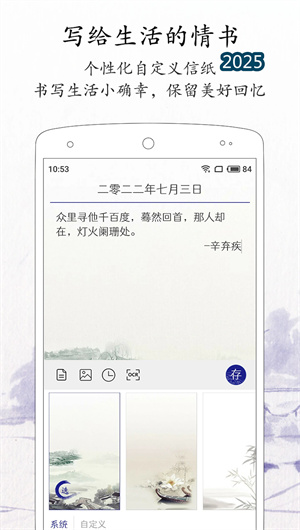 为营造沉浸、舒适的书写环境,每日记App提供了丰富的个性化定制选项。在视觉呈现上,应用提供多种字体选择,且字体大小可随意更改,以适应不同的阅读与书写习惯。更重要的是,内置了超多好看信纸模板,涵盖简约、复古、文艺等多种风格,用户还可以上传图片自定义信纸,让每一次记录都充满美感与个性。在内容管理方面,强大的全文搜索功能允许用户输入关键字,瞬间在海量记录中快速找到目标内容。同时,清晰直观的时间轴视图,以朴素简洁的线性方式查看不同时间的心路历程与生活轨迹,让回忆检索变得直观而高效。
