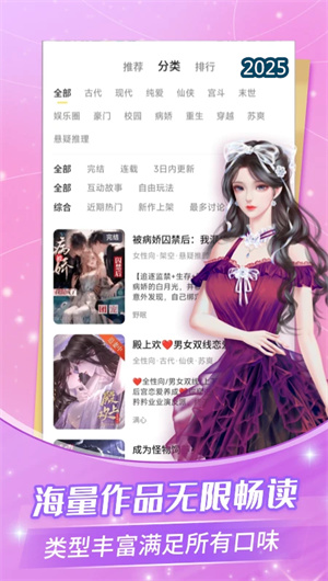 平台坚持 “海量小说免费阅读” 的普惠原则,建立了庞大的免费作品库,覆盖用户想要的所有类型。无论是偏好古风仙侠的宏大叙事,还是沉迷都市校园的细腻情感,或是追求悬疑恐怖的刺激心跳,都能在这里找到对应的互动佳作。更重要的是,平台对大量头部作品进行了 “精品视觉化升级” ,为其配置了符合故事氛围的精致背景图和令人惊艳的角色动态立绘。这种将优质文字内容与高质量美术资源相结合的策略,提供了远超纯文字交互的沉浸式感官体验,让用户仿佛置身于一部由自己主导的动画或漫画之中,用户对视觉化作品的点击率普遍高出纯文本作品 70%。