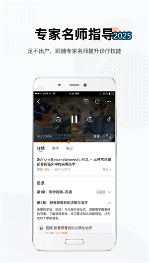 PBL(问题导向学习)专题以临床真实遇到的诊疗困境为起点,每个专题汇集5-8位不同流派专家的解决方案。例如在"复杂性骨折内固定失败"专题中,学员可同时观看创伤骨科、运动医学及生物力学专家的不同处理策略。平台通过多视角视频同屏对比技术,直观展示各方案的技术要点与适应症差异。学员需完成治疗方案优劣势分析矩阵,并在虚拟病例讨论室中陈述自己的临床决策逻辑,最后由专题导师团进行综合点评,培养医生的批判性临床思维。